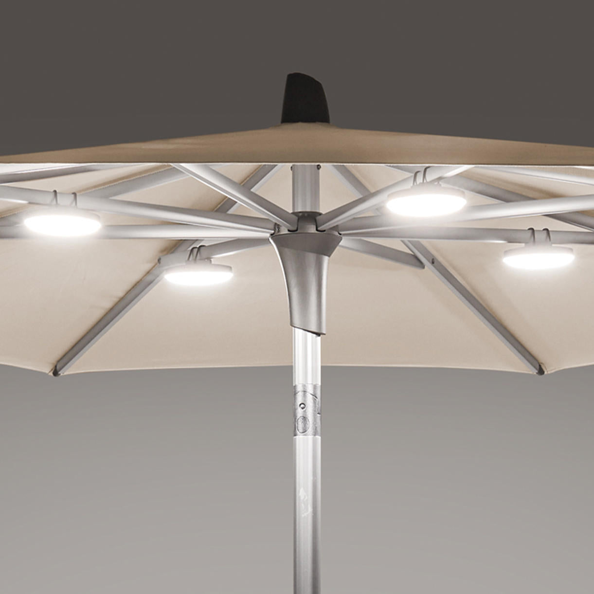 These outdoor parasol LED spot lights are a very easy way to light your outdoor seating area from underneath your parasol. They are suitable to be used and fixed on a wide variety of Glatz sunshade and parasol types.