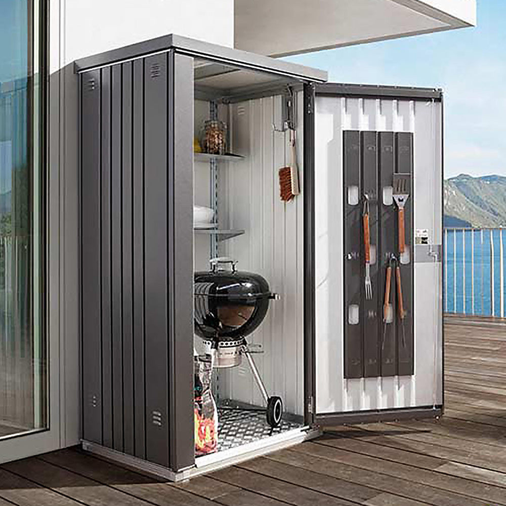 The Biohort Equipment Locker can be used to store garden equipment, barbecue grills, garden furniture, and other similar items protected from rain and theft.
