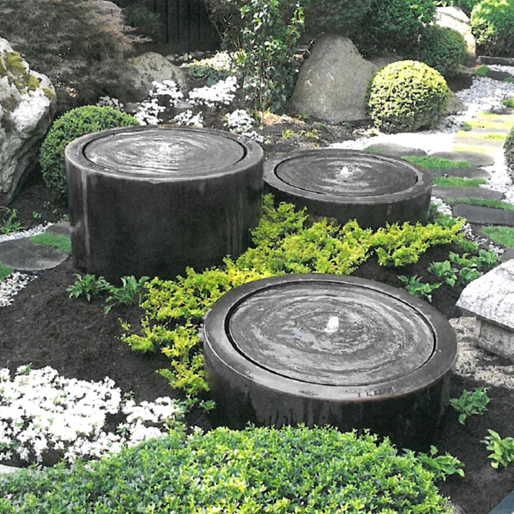 To create a stunning water feature look at using a couple of the water pools in different diameters with soft planting between.