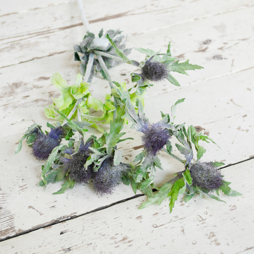 The soft dusty green and rich midnight purple blue of the the sea holly make gorgeous alternative to classic Christmas colours.