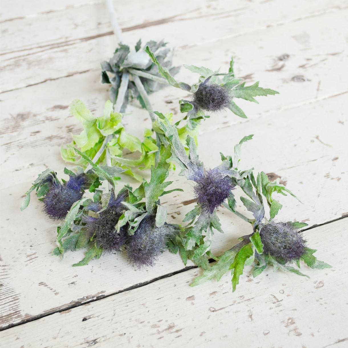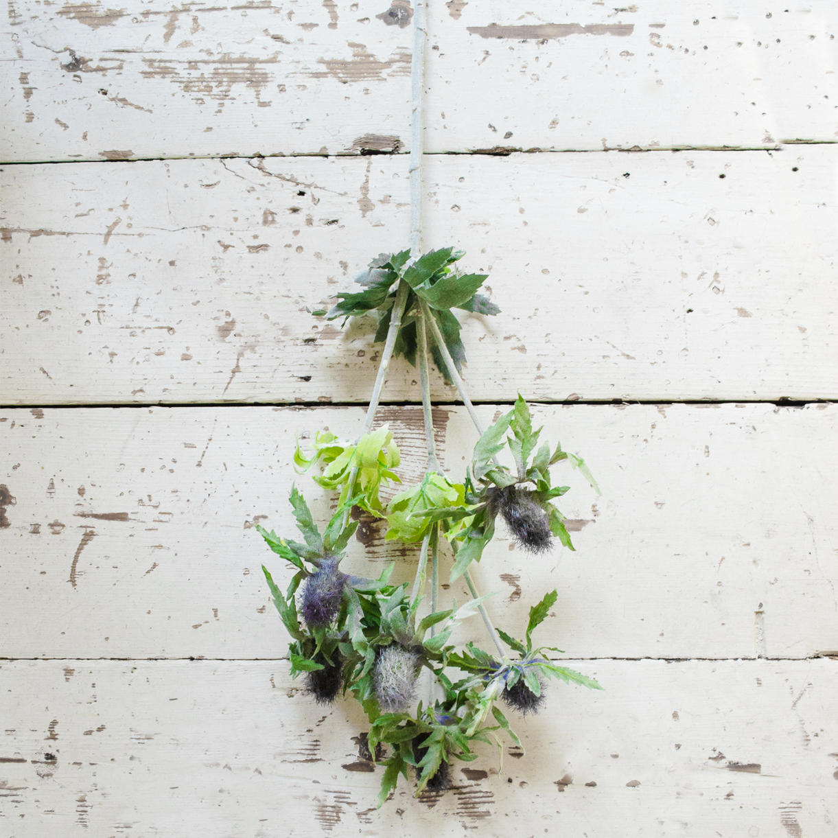 Add some sophisticated winter greenery with this delightful Eryngium or sea holly floral stem.