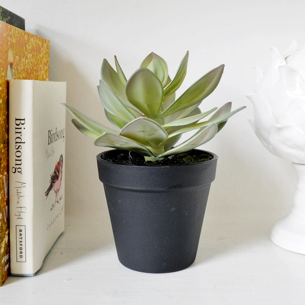 A gorgeous realistic faux succulent. The plant comes in a small, black plastic plant pot 16cm diameter - easy to pop in other containers or pots.