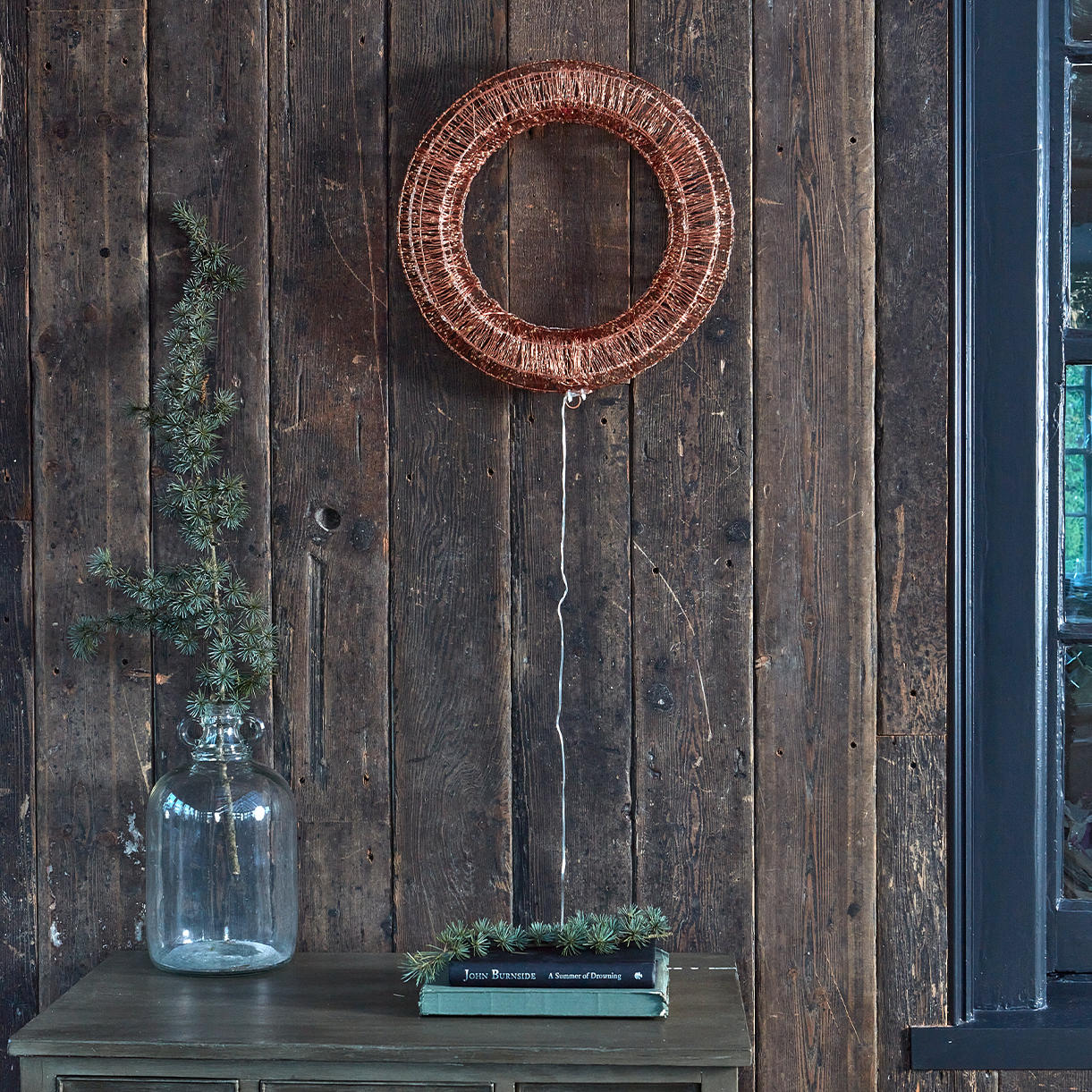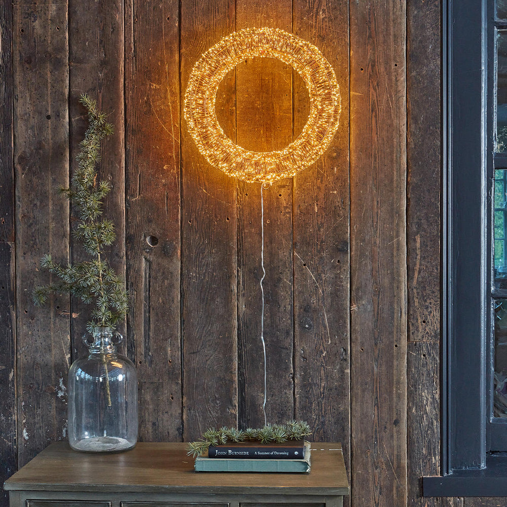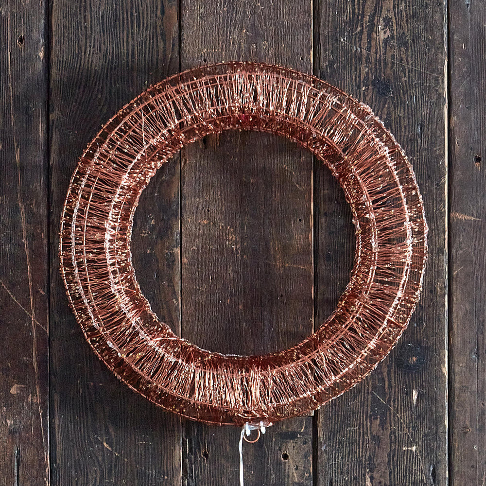 This wonderful sparking copper wire wreath is a real statement piece to hang on a wall or door way.