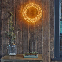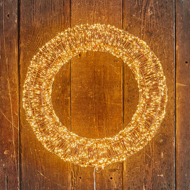 Perfectly decadent and exquisitely stunning with 960 warm white soft flickering micro LED lights wrapped round this wire wreath. It will create drama inside or outside.
