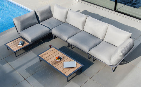 Unique, urban styled outdoor lounge modular seating equally at home on the terrace or by the pool.