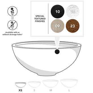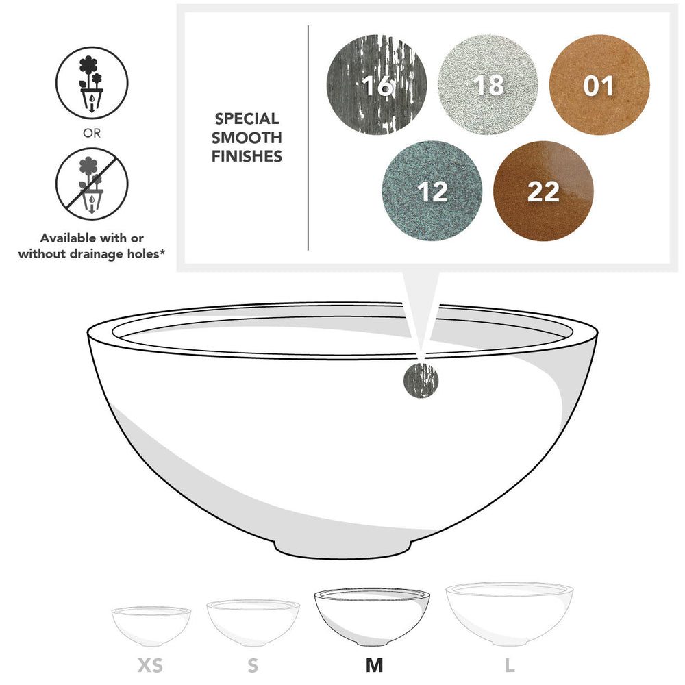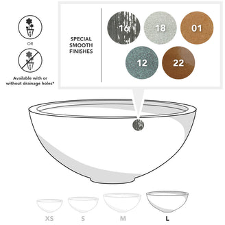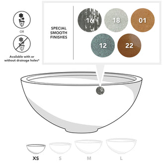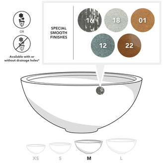 The planter is available in a variety of finishes - just select your choice from the drop down menu to see thumbnails of the finish. You might also wish to examine them in more detail by exploring all our finishes below: