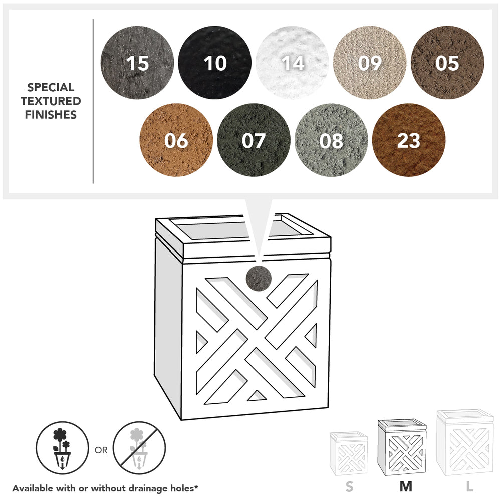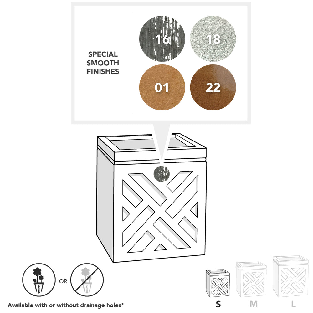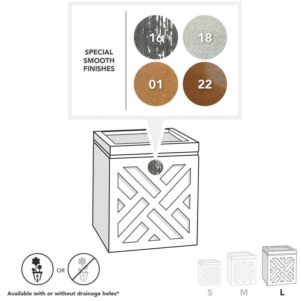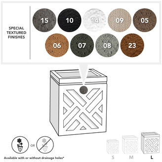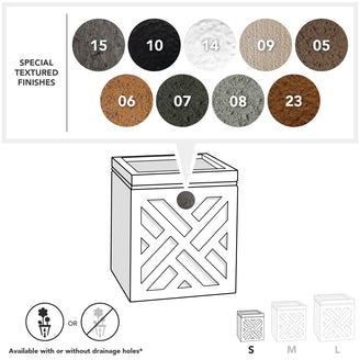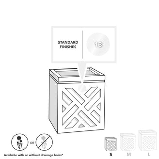 The planters are available in a variety of finishes - just select your choice from the drop down menu to see thumbnails of the finish. You might also wish to examine them in more detail by exploring all our finishes below: