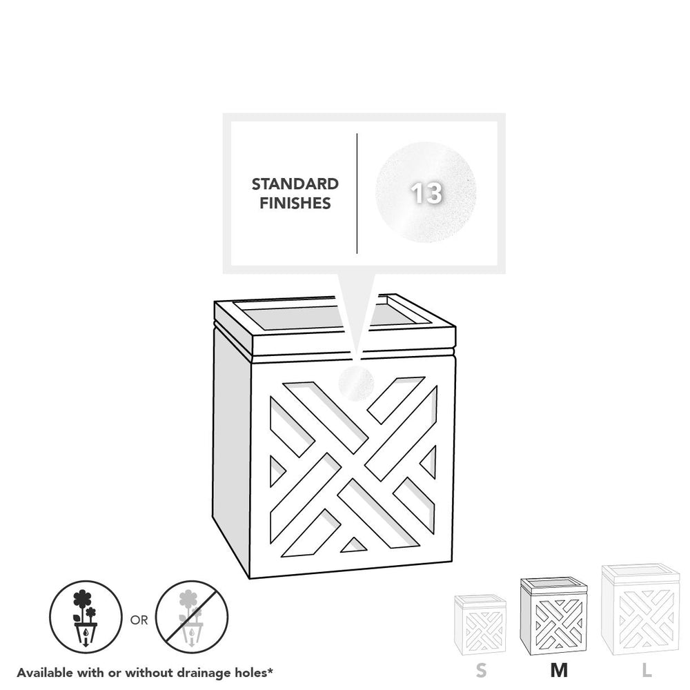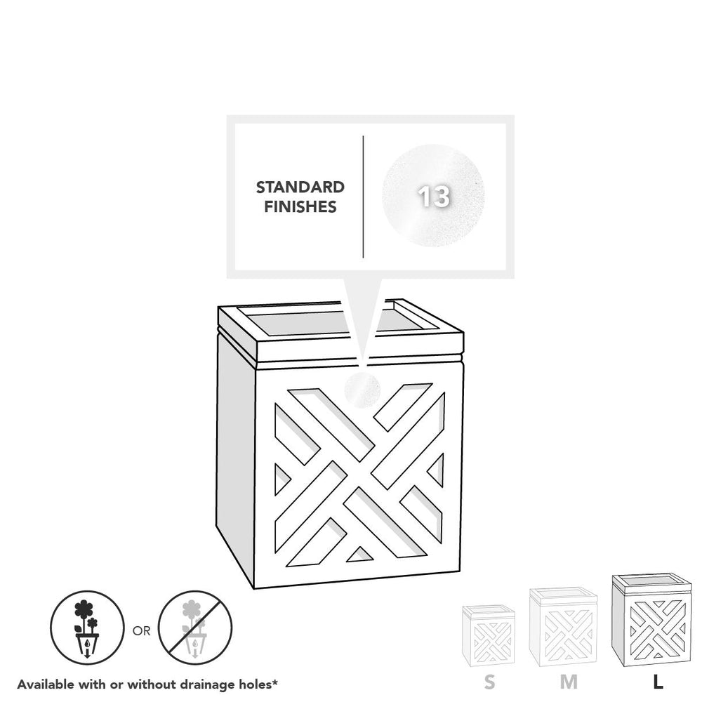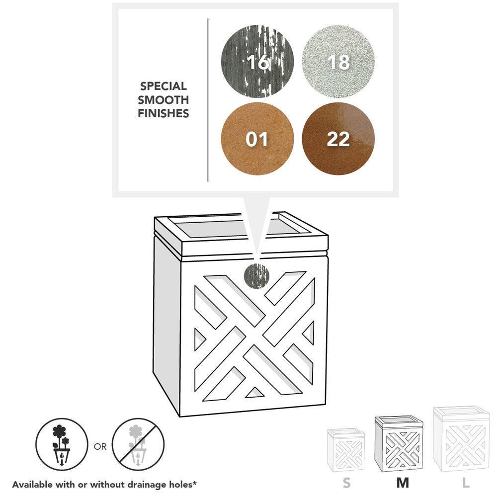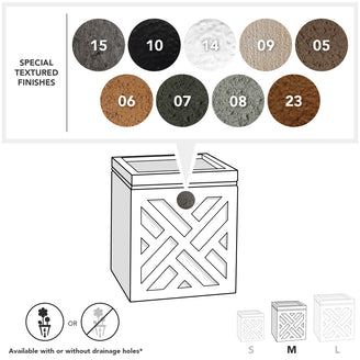 The planters are available in a variety of finishes - just select your choice from the drop down menu to see thumbnails of the finish. You might also wish to examine them in more detail by exploring all our finishes below: