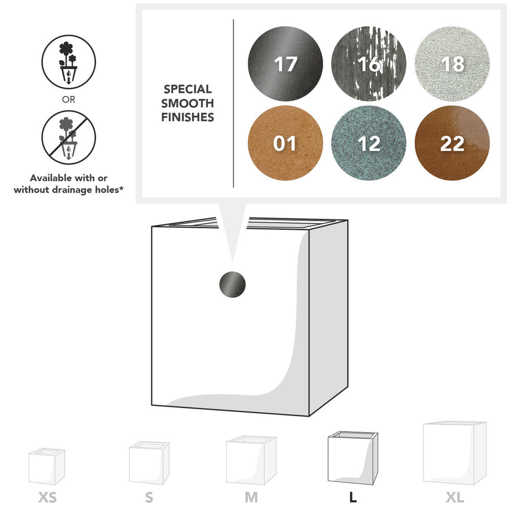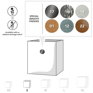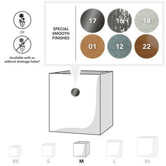 The planters are available in a variety of finishes - just select your choice from the drop down menu to see thumbnails of the finish. You might also wish to examine them in more detail by exploring all our finishes below: