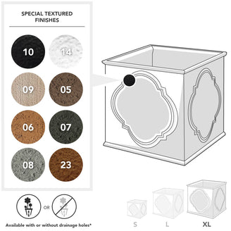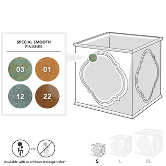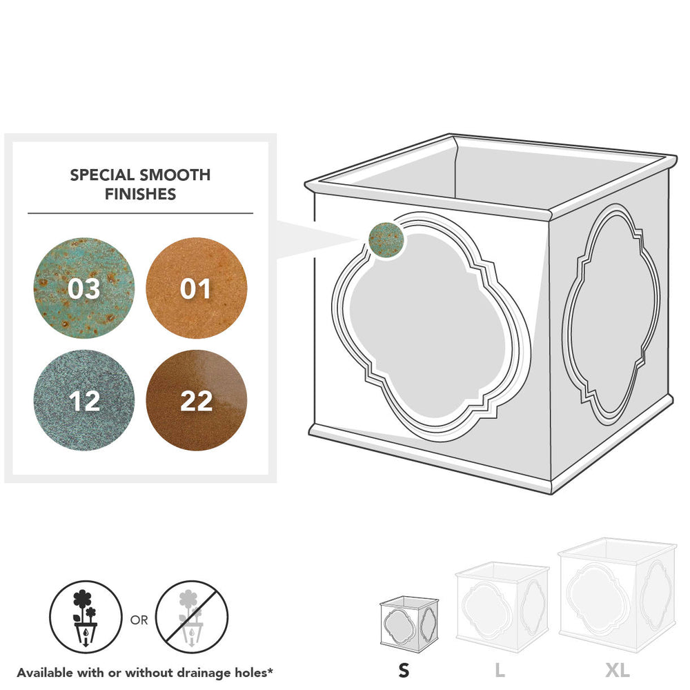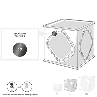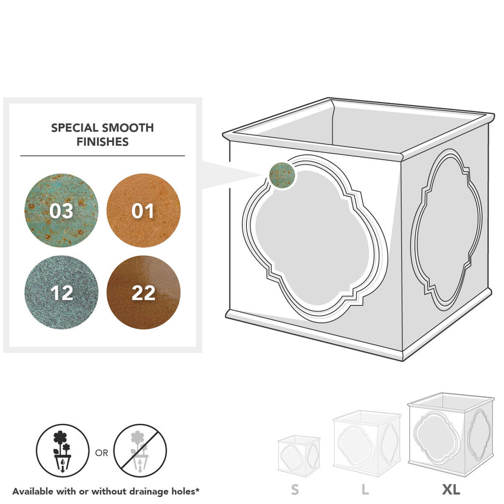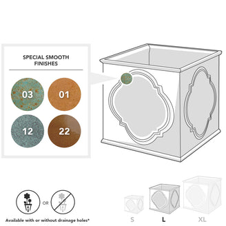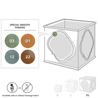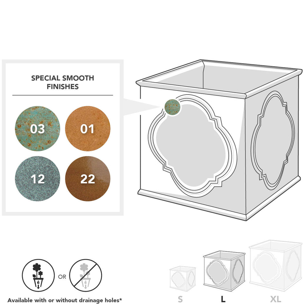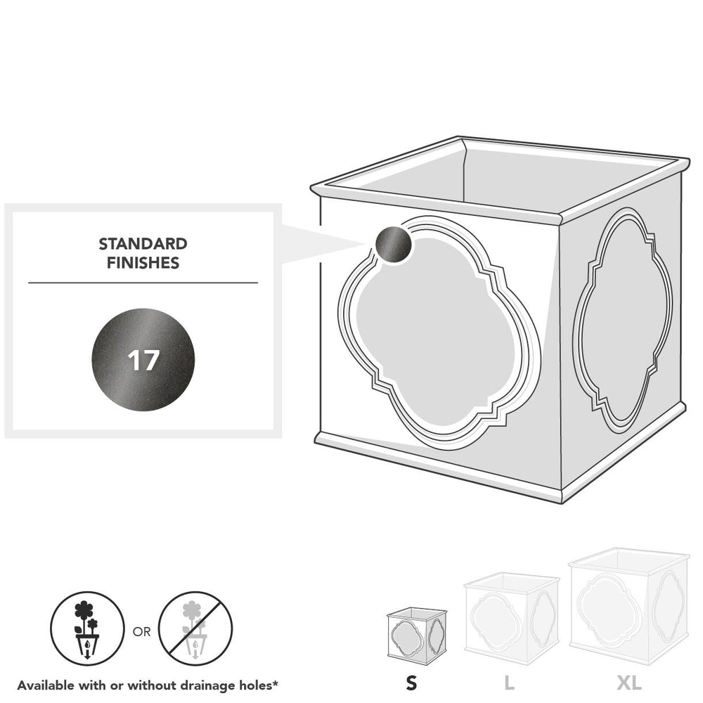 The planter is available in a variety of finishes - just select your choice from the drop down menu to see thumbnails of the finish. You might also wish to examine them in more detail by exploring all our finishes below: