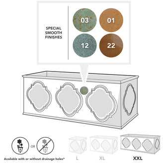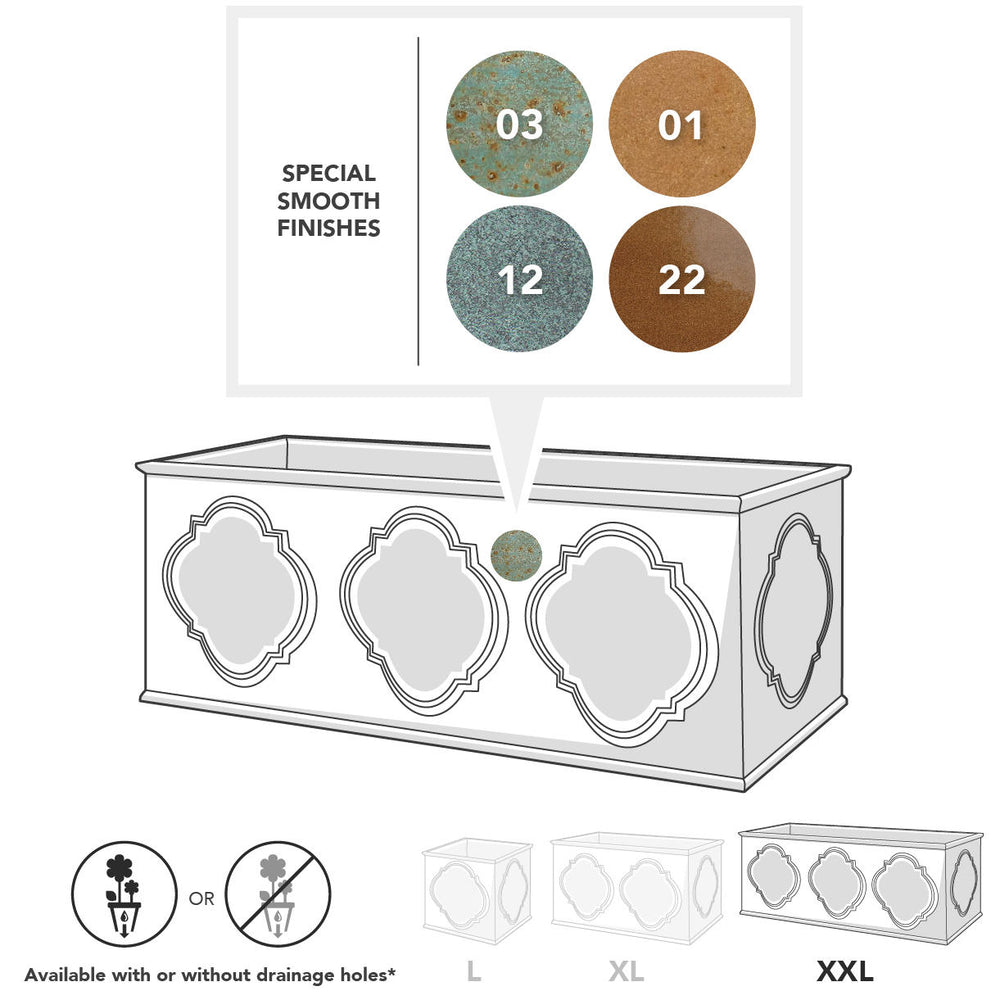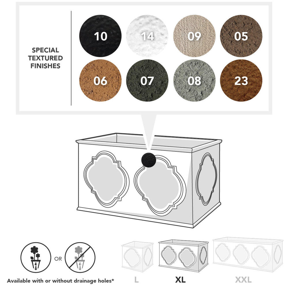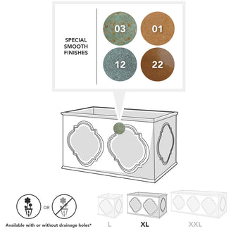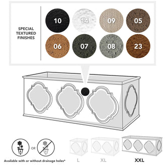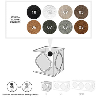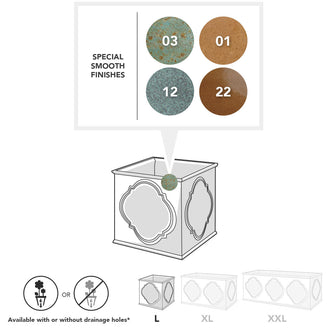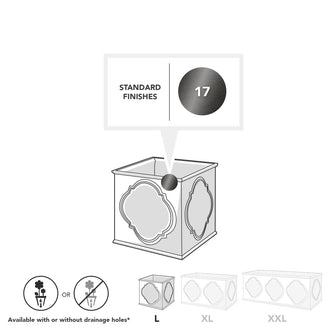 The planter is available in a variety of finishes - just select your choice from the drop down menu to see thumbnails of the finish. You might also wish to examine them in more detail by exploring all our finishes below: