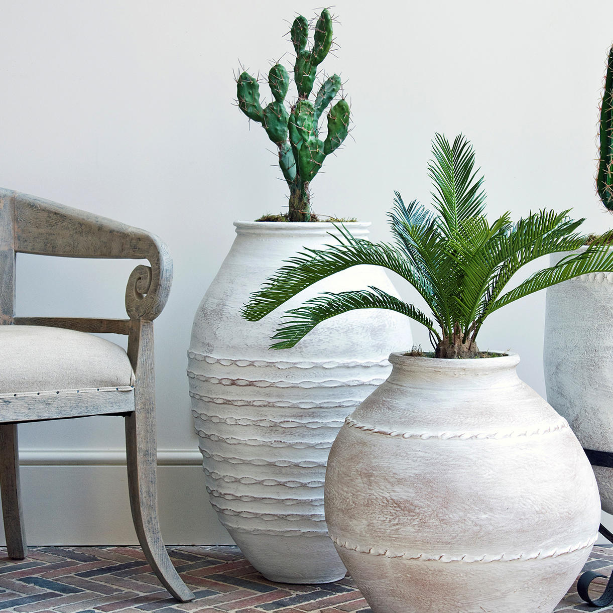 These Mediterranean pots make ideal architectural points and accents for interior and exterior designs