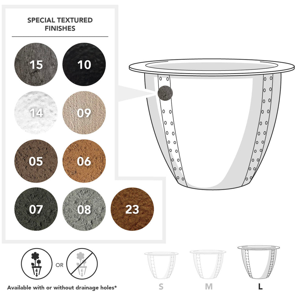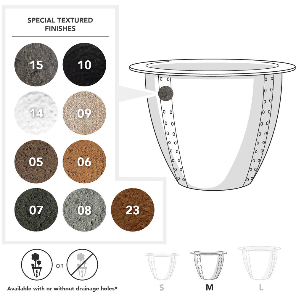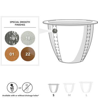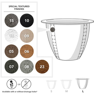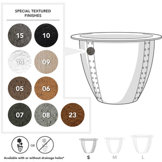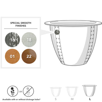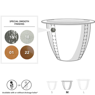 The planters are available in a variety of finishes - just select your choice from the drop down menu to see thumbnails of the finish. You might also wish to examine them in more detail by exploring all our finishes below: