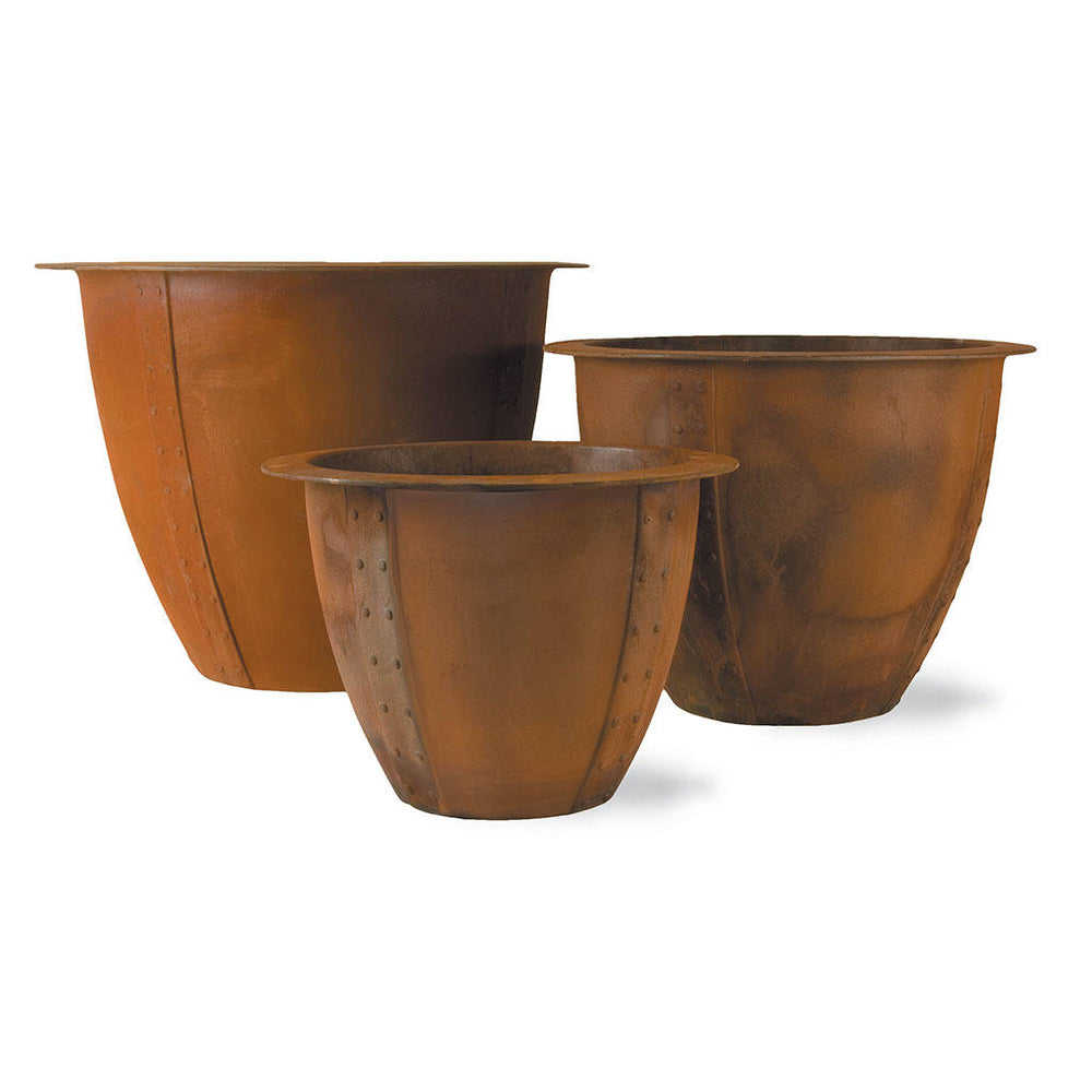 This rust finish, combined with riveting, that has been applied to the Norman planters make for an authentic planter that looks as if it has been dug up from the garden!
