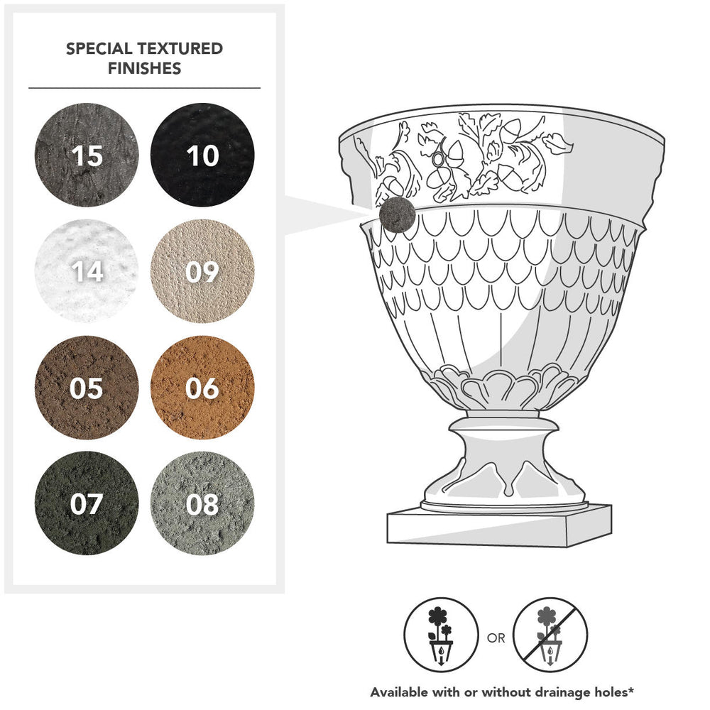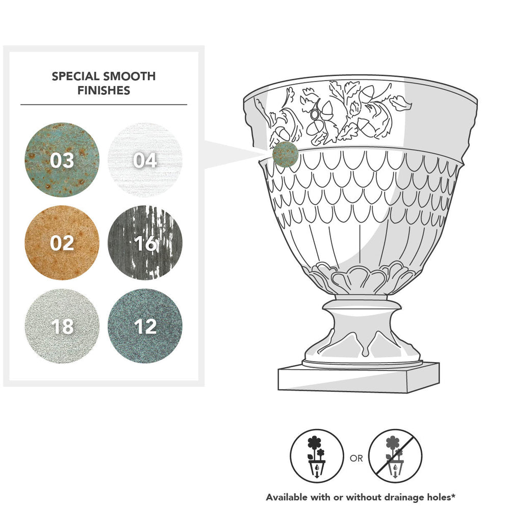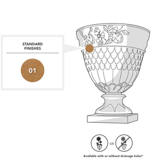 The planter is available in a variety of finishes - just select your choice from the drop down menu to see thumbnails of the finish. You might also wish to examine them in more detail by exploring all our finishes below: