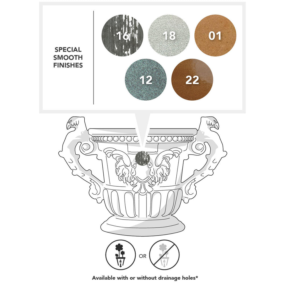 The Queen Anne Urn planter is a classically styled outdoor planter made from lightweight fibreglass. Influenced by 17th and 18th century design, these garden urns were used as focal points in the garden. Made in fibreglass the urns are far lighter in weight than an original as well as being frost resistant and very durable.