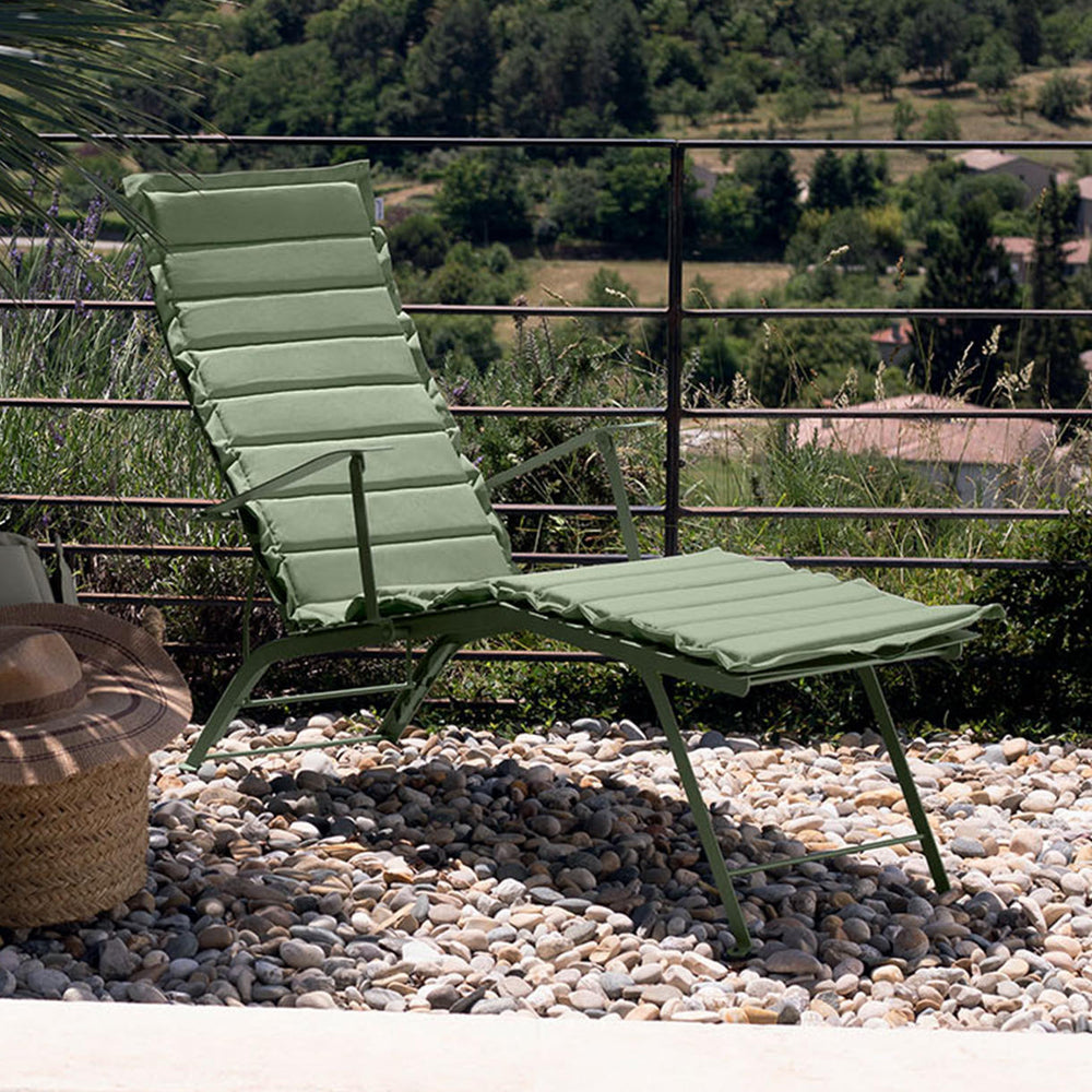 Made in outdoor fabric with a padded foam filling and elastic straps so the cushions fit securely on the bistro chaise longue.