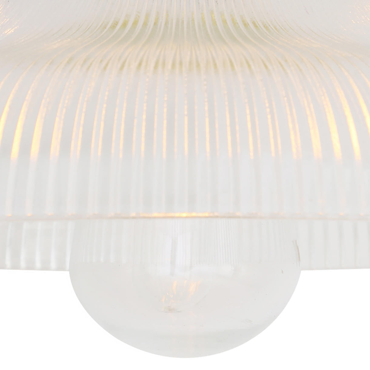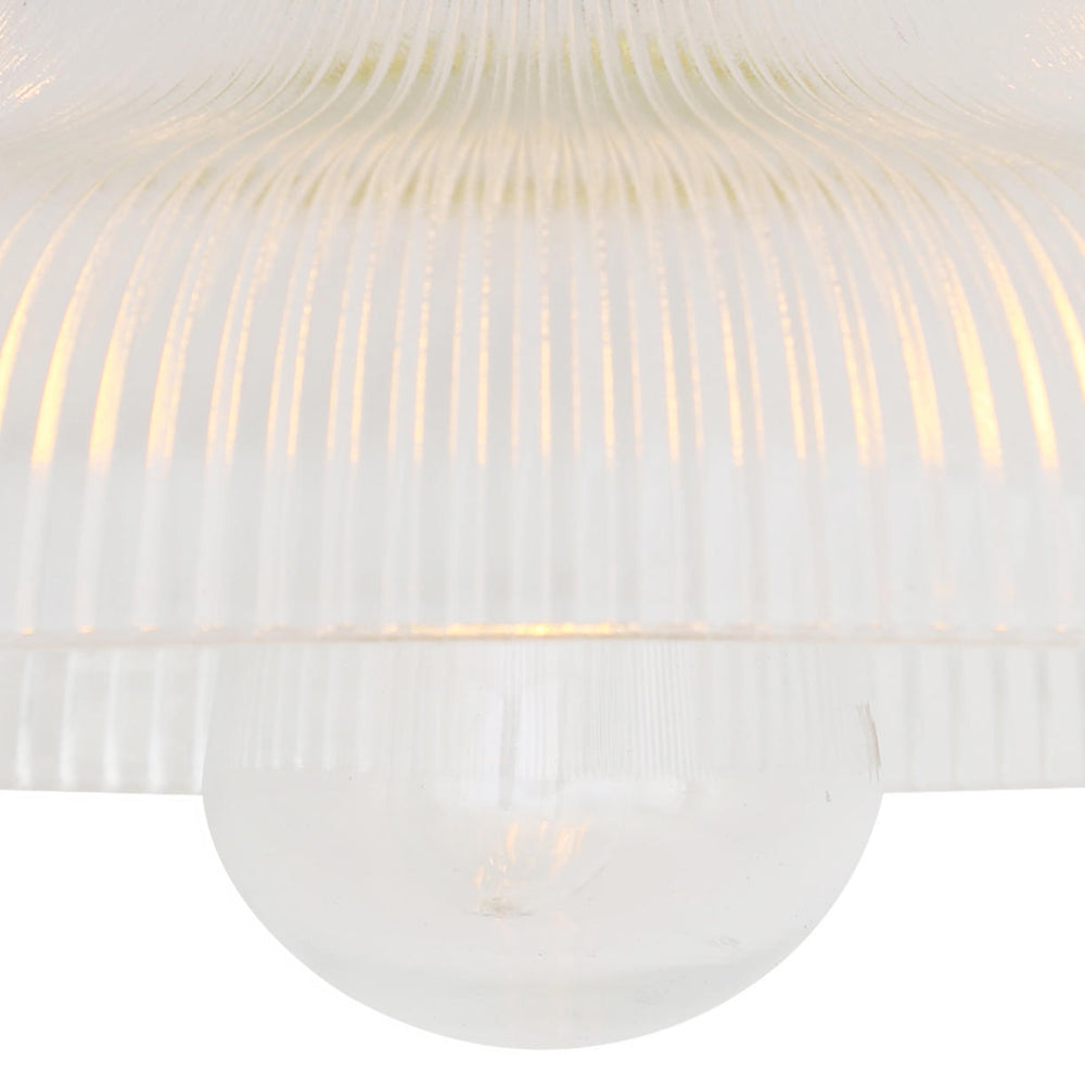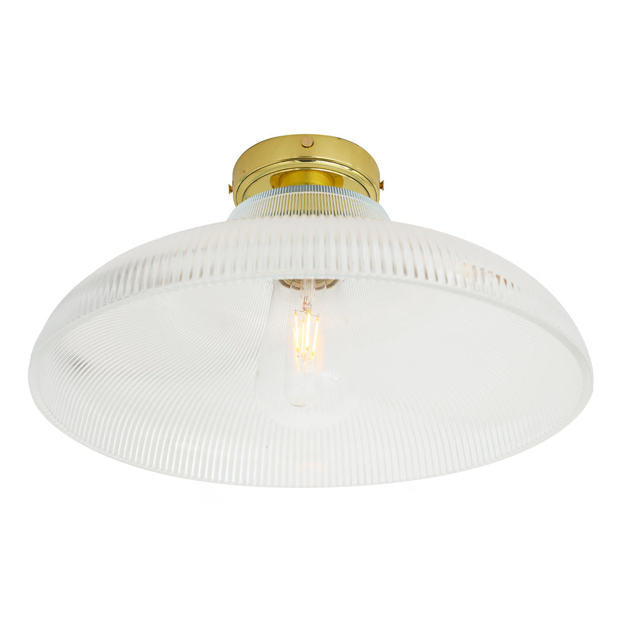 Aquarius is a ceiling light born from utility and craft, it is a modern reimagining of the traditional railway glass ceiling light. With a 30cm Holophane prismatic glass shade diffuses light is attached to a moisture-resistant brass lamp holder and matching ceiling rose. Inside a smaller teardrop glass shade shelters the LED tube light within a sealed, waterproof enclosure .