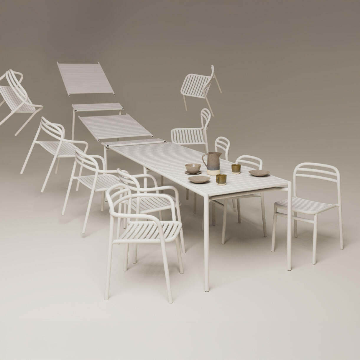 Made from durable powder-coated aluminium in timeless colours, it’s a chic yet functional choice for relaxed outdoor dining, season after season.