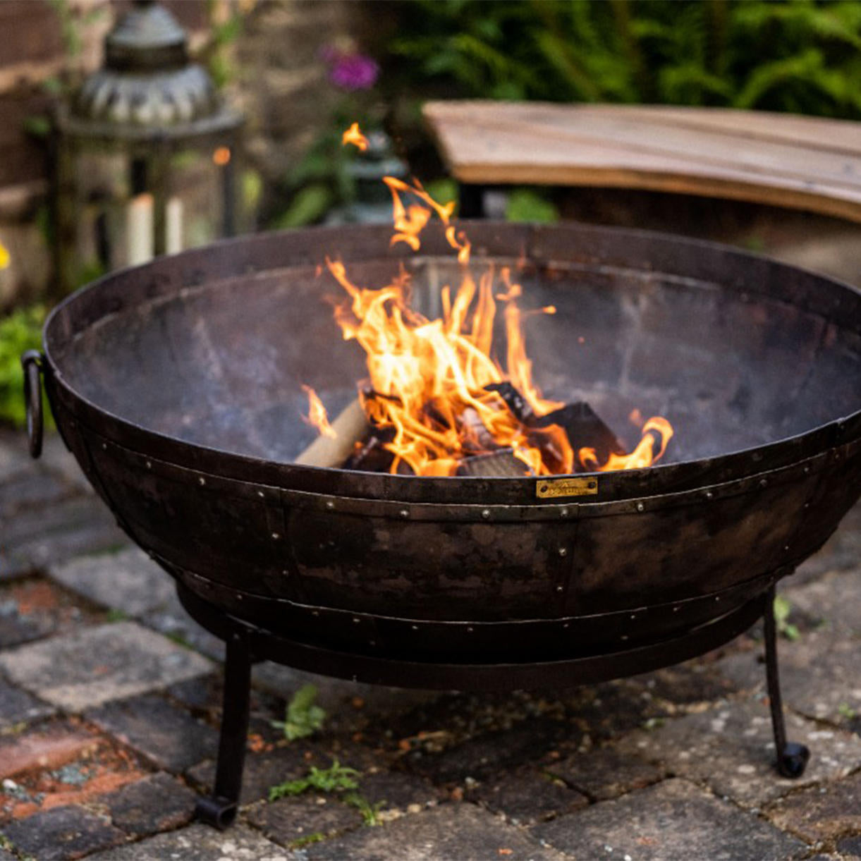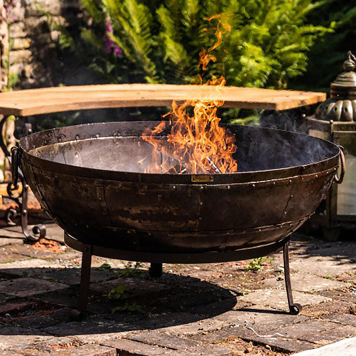 These large Recycled Kadais are complete with a gothic style low stand which the ideal height for sitting and relaxing around the fire with friends.
