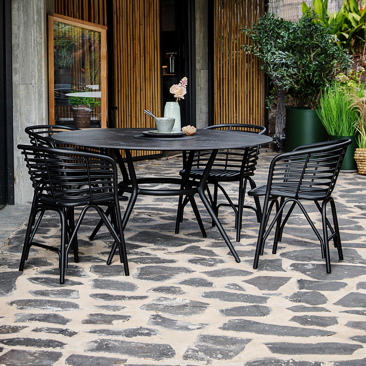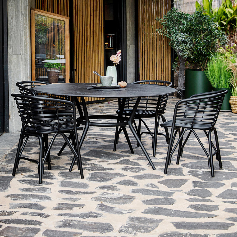 Designed by Foersom and Hiort-Lorenzen MDD for Cane-line, the Blend outdoor chairs are comfortable and easy for relaxed alfresco dining.