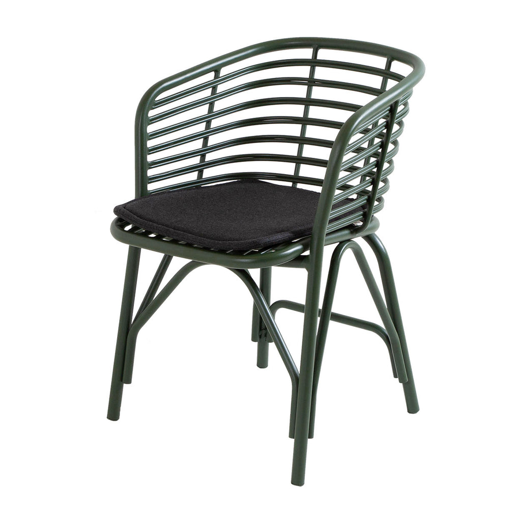 In aluminium in a choice of dark green or lava grey the chairs are perfect teamed up with tables such as Joy or Drop.