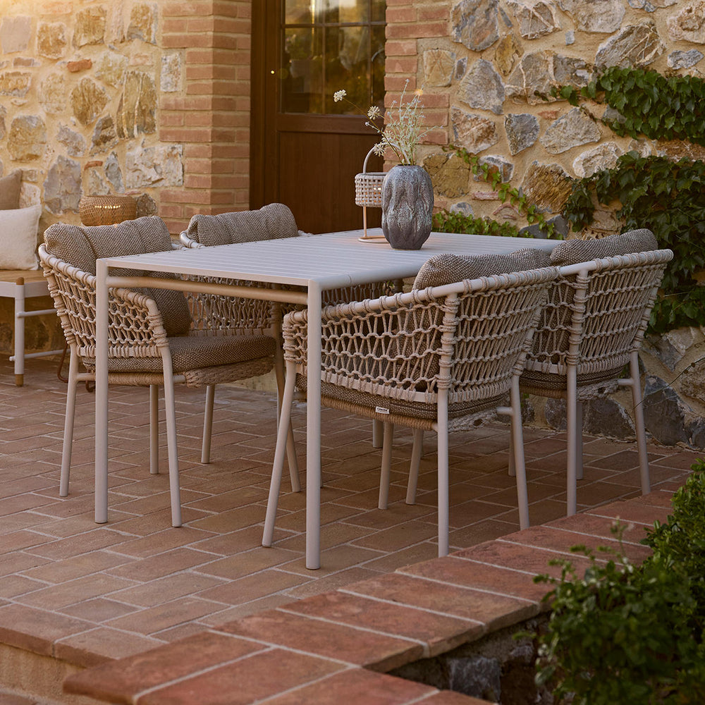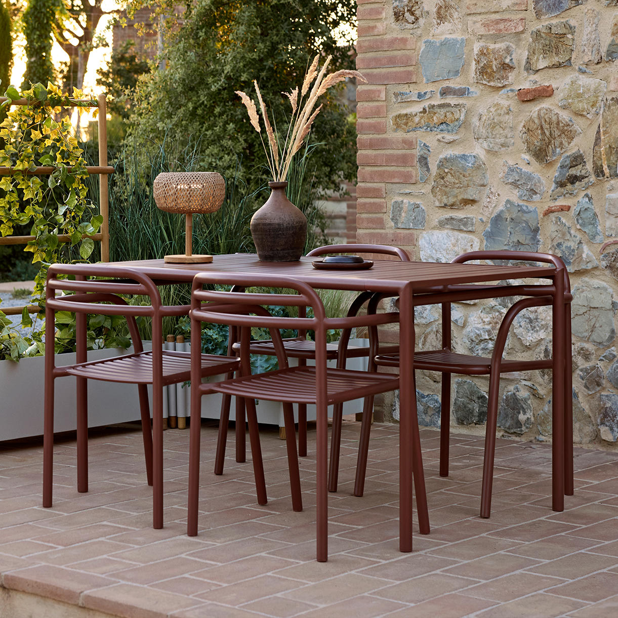 Made from durable powder-coated aluminium in timeless colours, it’s a chic yet functional choice for relaxed outdoor dining, season after season.