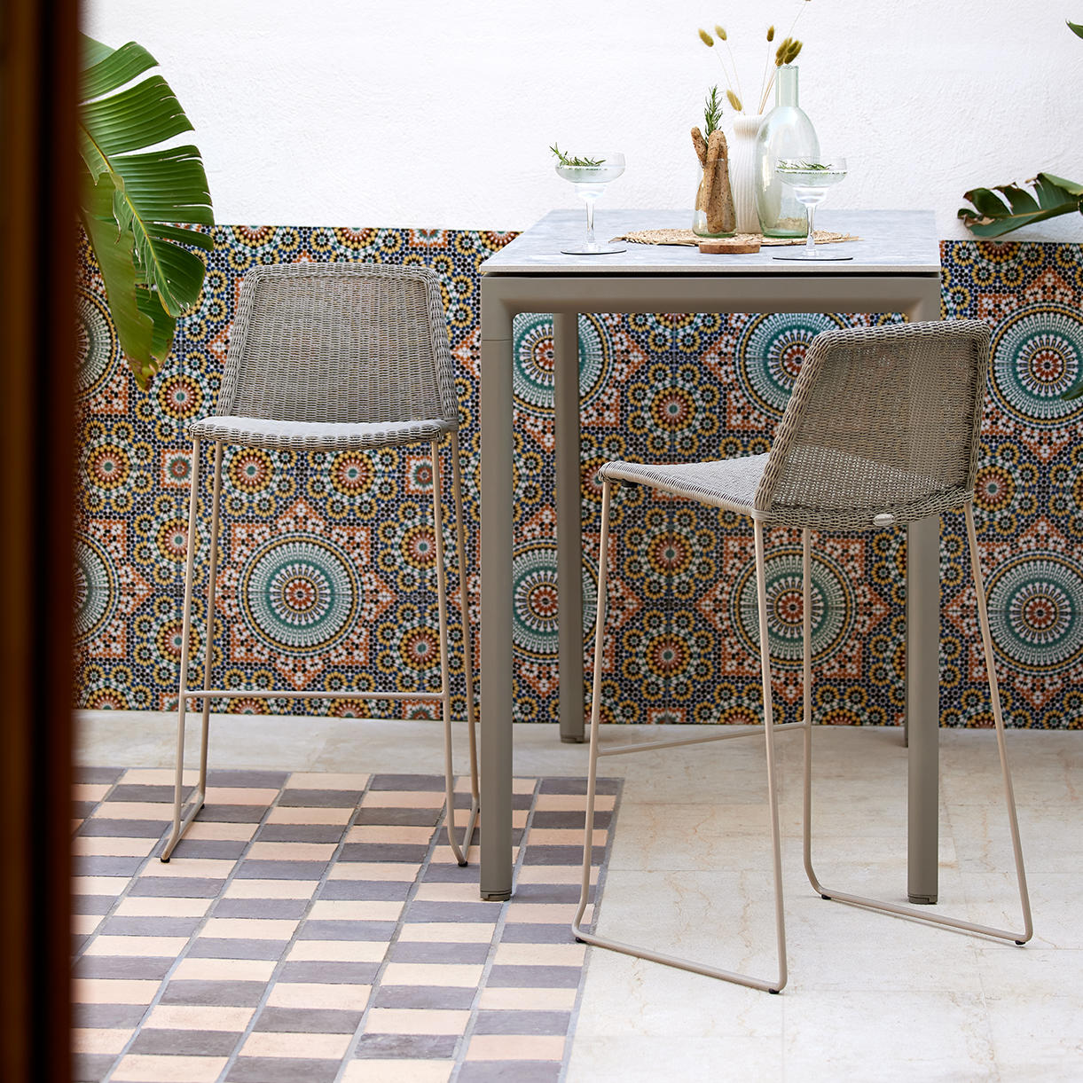 Made in an all-weather weave, the Breeze bar stools are comfortable and stylish, and work well in both in outdoor areas, as well as interior spaces.