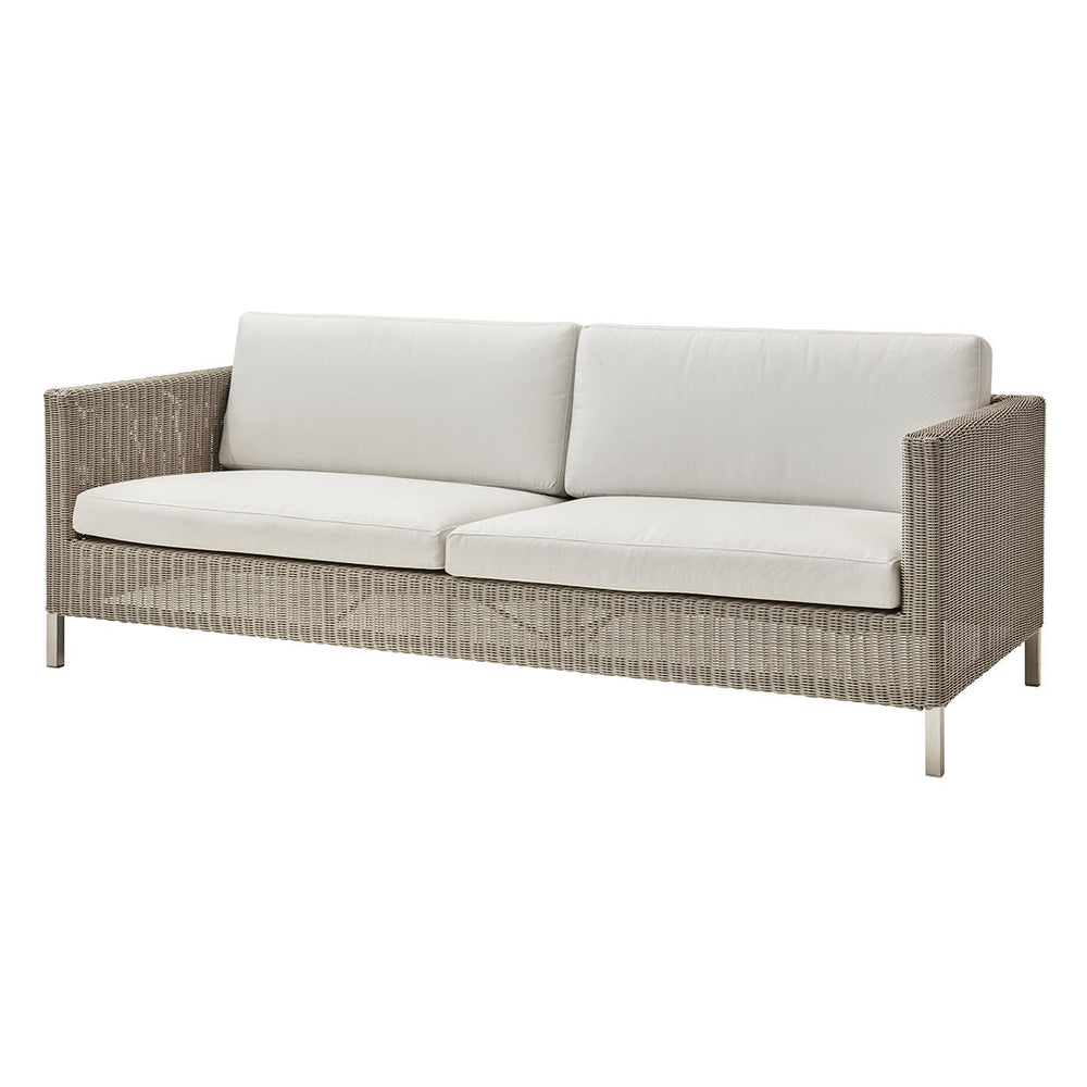 The Connect outdoor seating is a combination of flexible modular seating and standalone pieces, all in a fine classic weave in a soft taupe colour