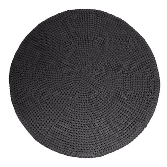 The Discover Outdoor Rug showcases exceptional craftsmanship with its intricate knit and crochet-inspired design, entirely handmade for a truly unique finish.