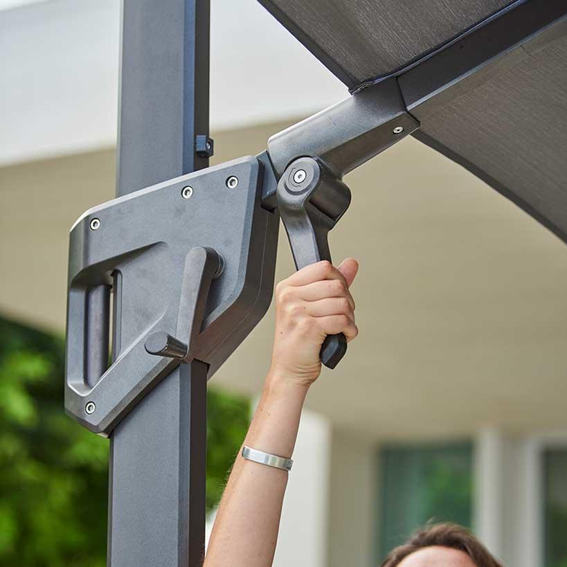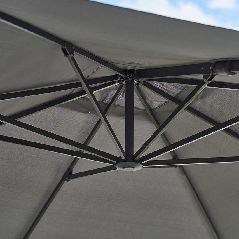 The Anthracite, Light Grey and Taupe parasols have an anthracite aluminium pole.
