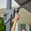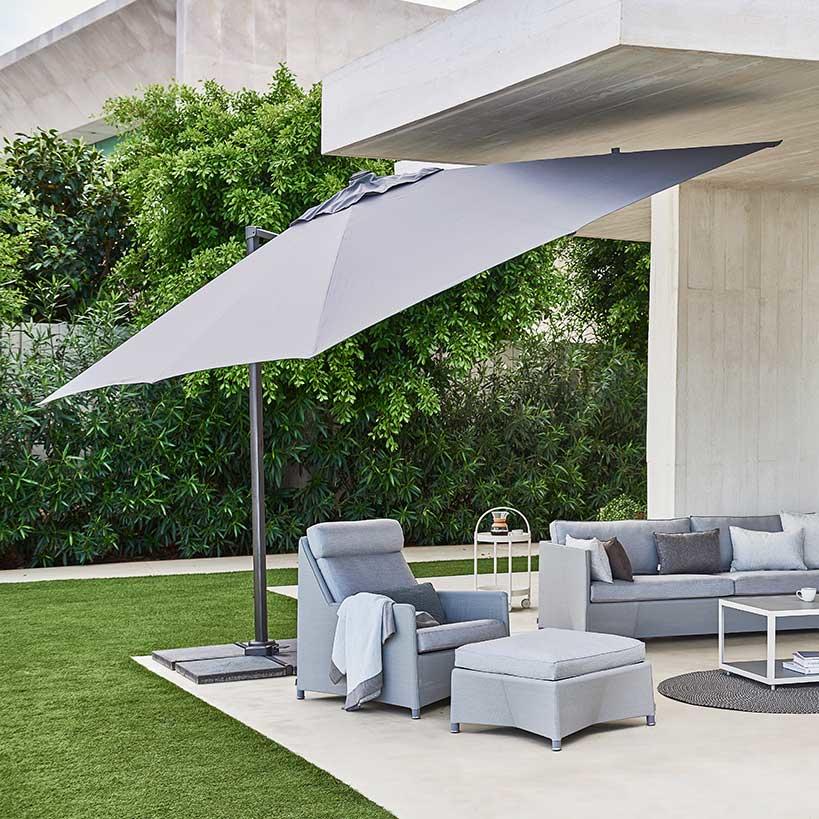 It is particularly suitable for larger tables where there is no parasol hole, or for outdoor lounge or modular seating furniture.