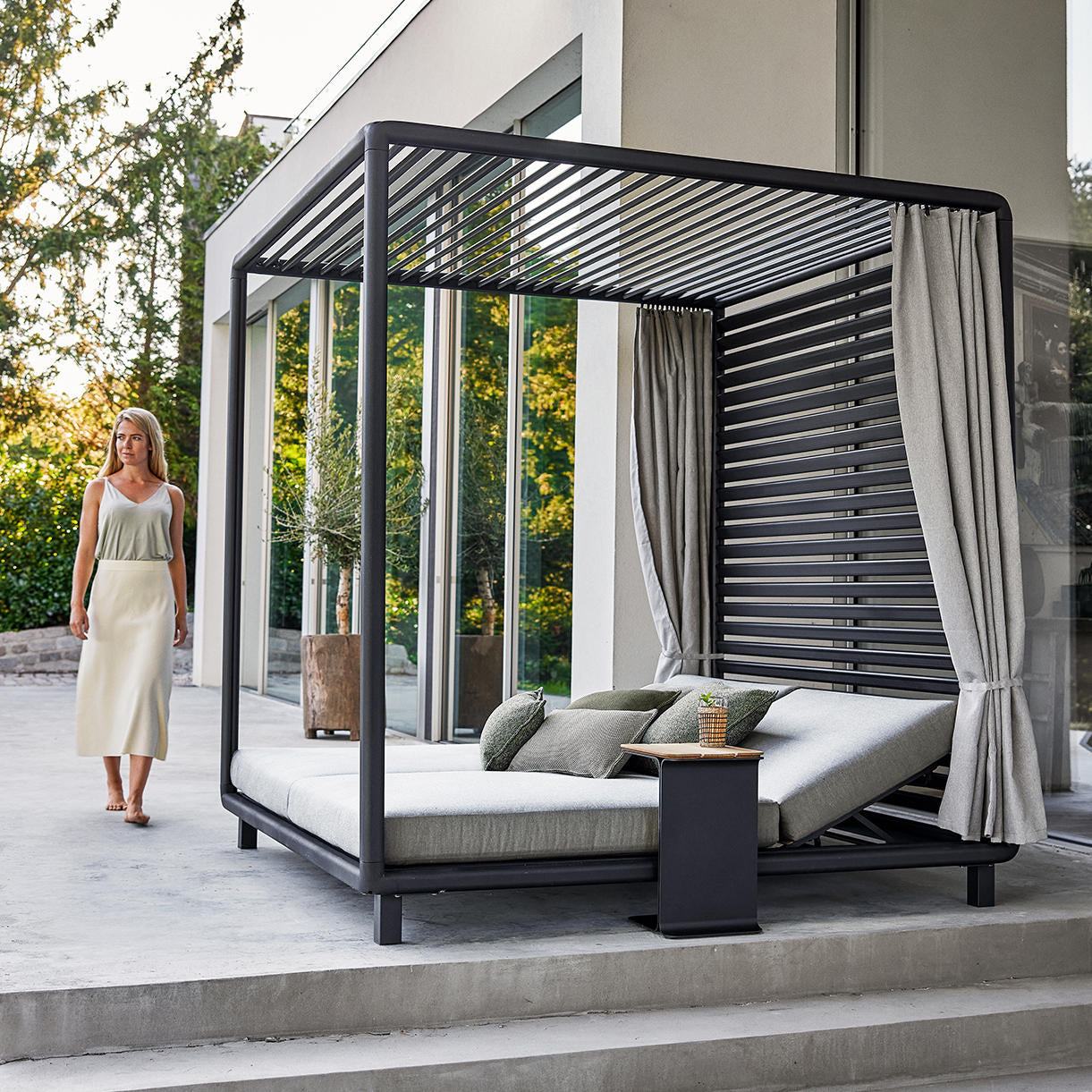 The Laze Cabana comprises of a Cabana frame with two mattresses with Cane-line Natté fabric and QuickDry foam.