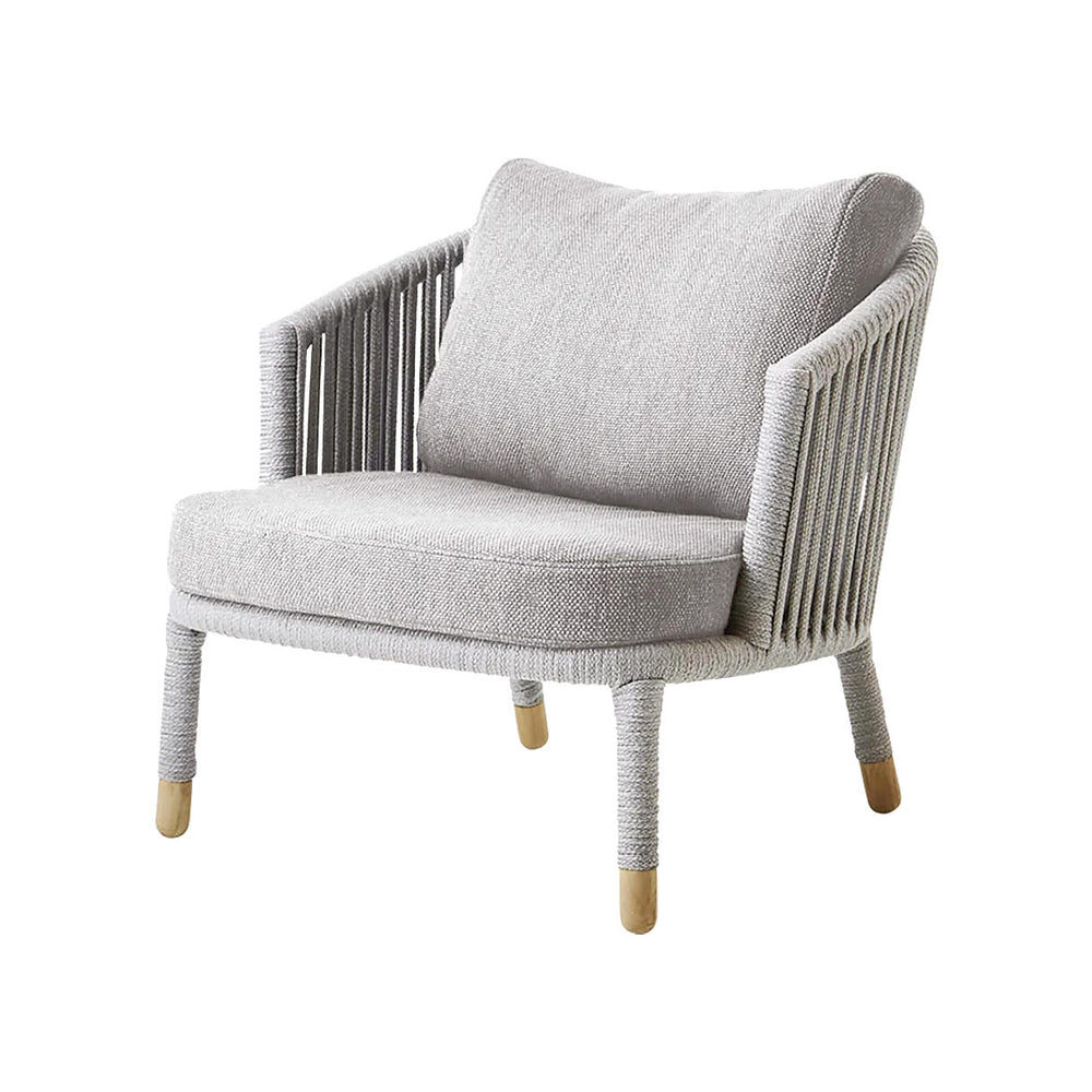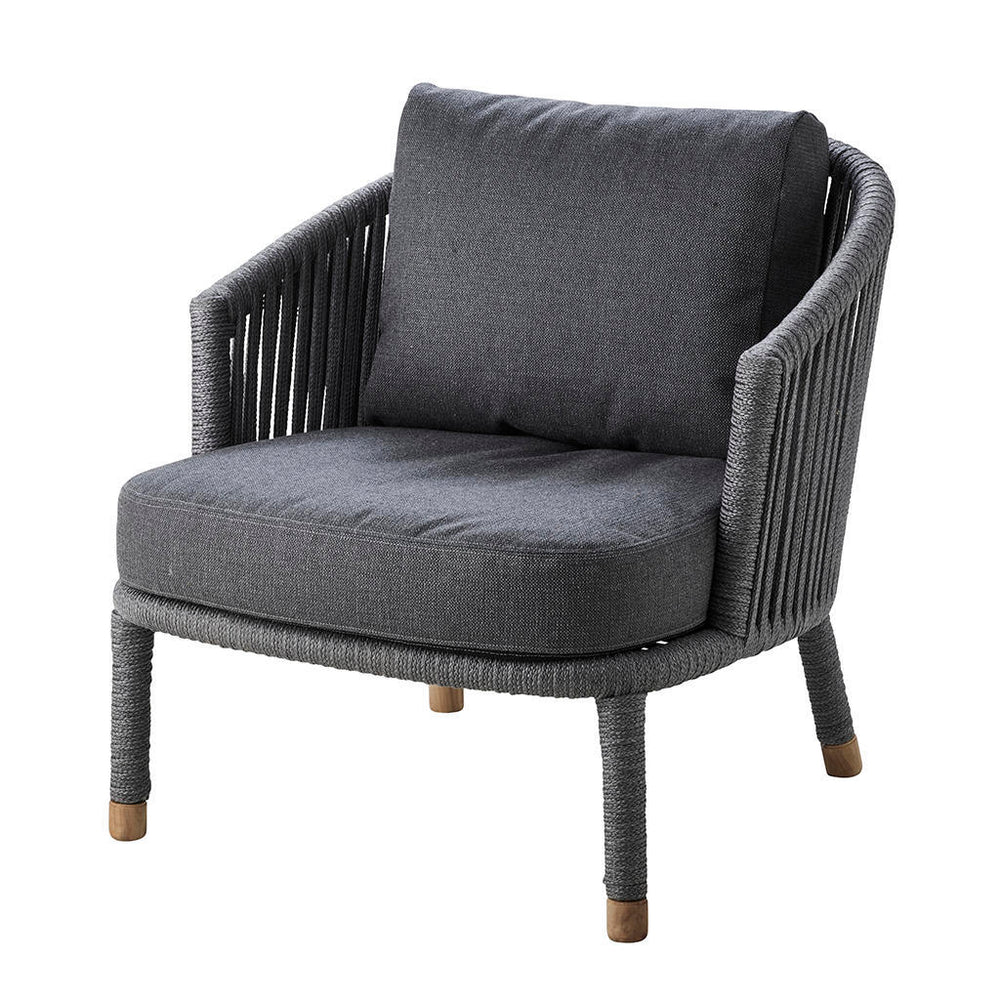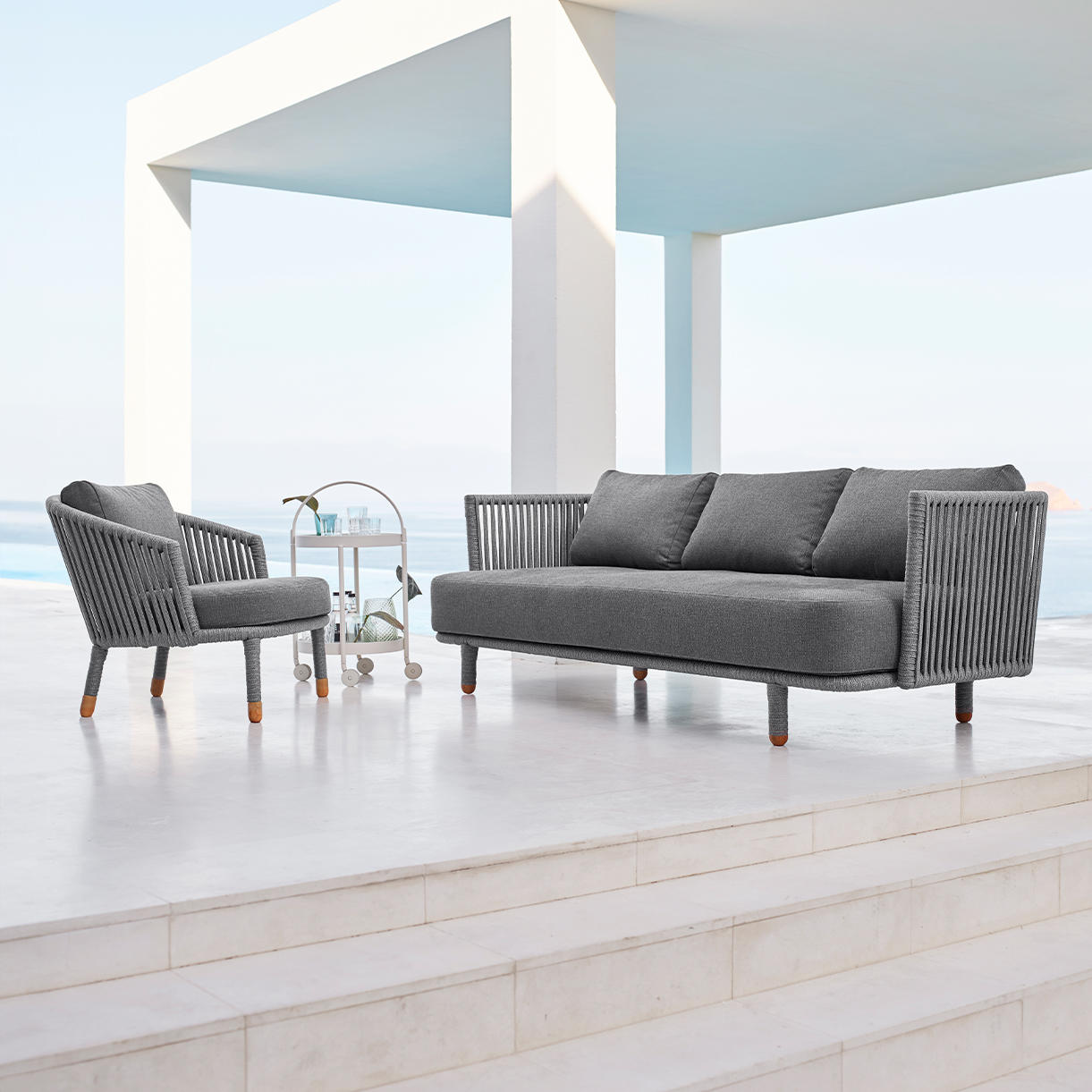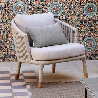 The armchair is produced using Cane-line all weather Soft Rope and AirTouch QuickDry fabric cushions, over a powder coated aluminium frame with teak detailing.