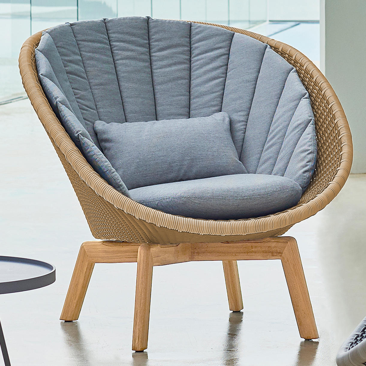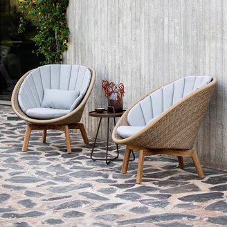 The Peacock outdoor lounge chairs in all weather weave with teak legs, have been designed in line with all Cane-line furniture to give both high levels of comfort as well as functionality.