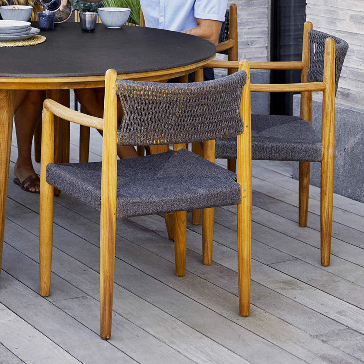 The dining chair is manufactured using the finest teak on the market combined with an elegant and traditional Cane-line Soft Rope weave.