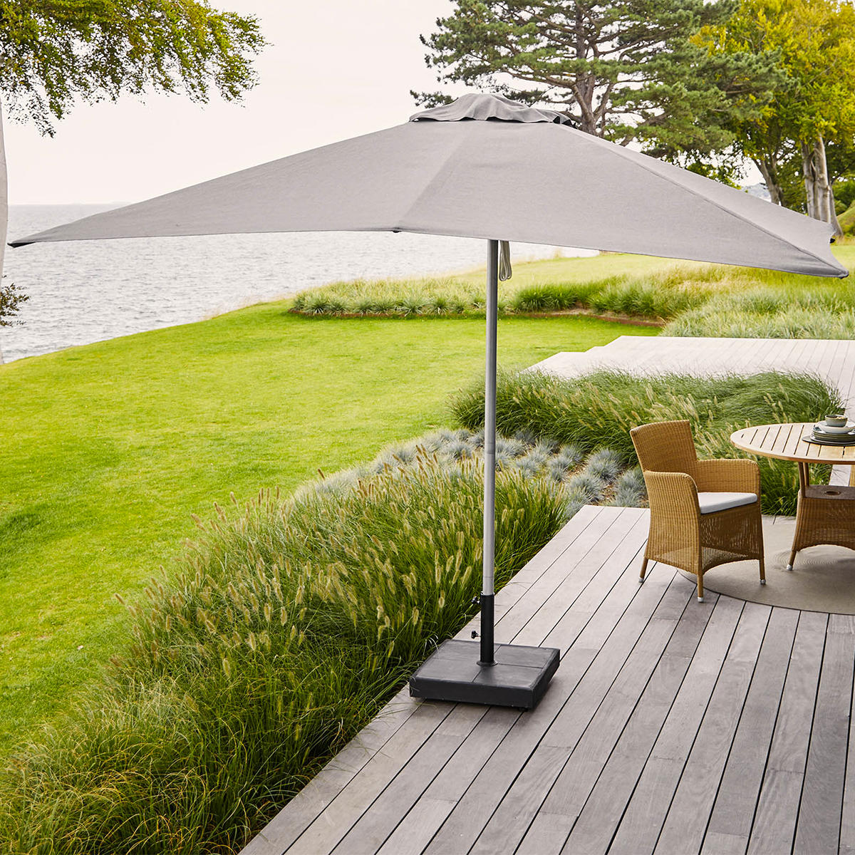 The Shadow parasol with pulley system, is a simple elegant parasol to complement the Cane-line outdoor furniture ranges.