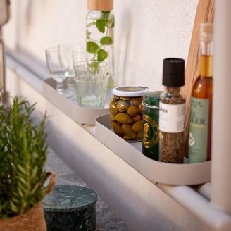 The Kitchen Wall system is complete with two removable shelves.