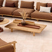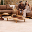 This large relaxed coffee table has a sturdy teak frame which naturally develops a silver-grey patina over time.