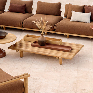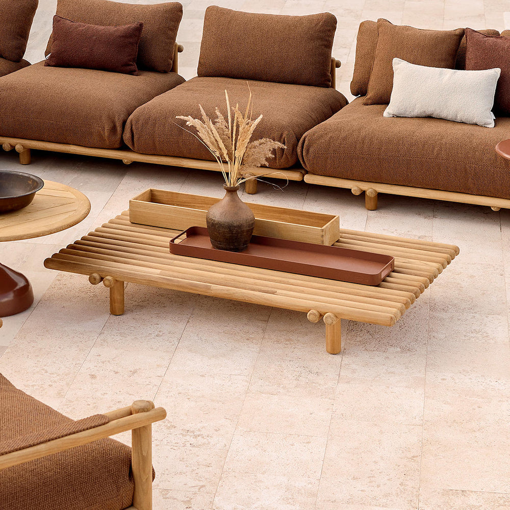 The Sticks Teak Platform coffee table by Cane-line is the perfect complement for the Sticks Modular Platform Lounge.