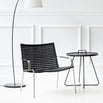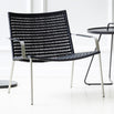 The chair is made of stainless steel and with black or natural yarn, in a choice of flat or round weave.