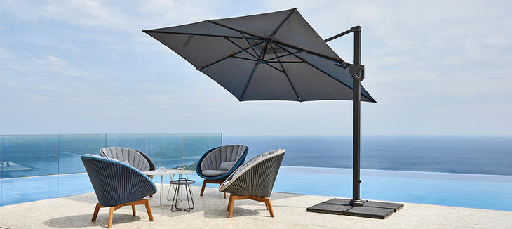 Supported at just one end these parasols are great for getting close to a space without instrusion of the base
