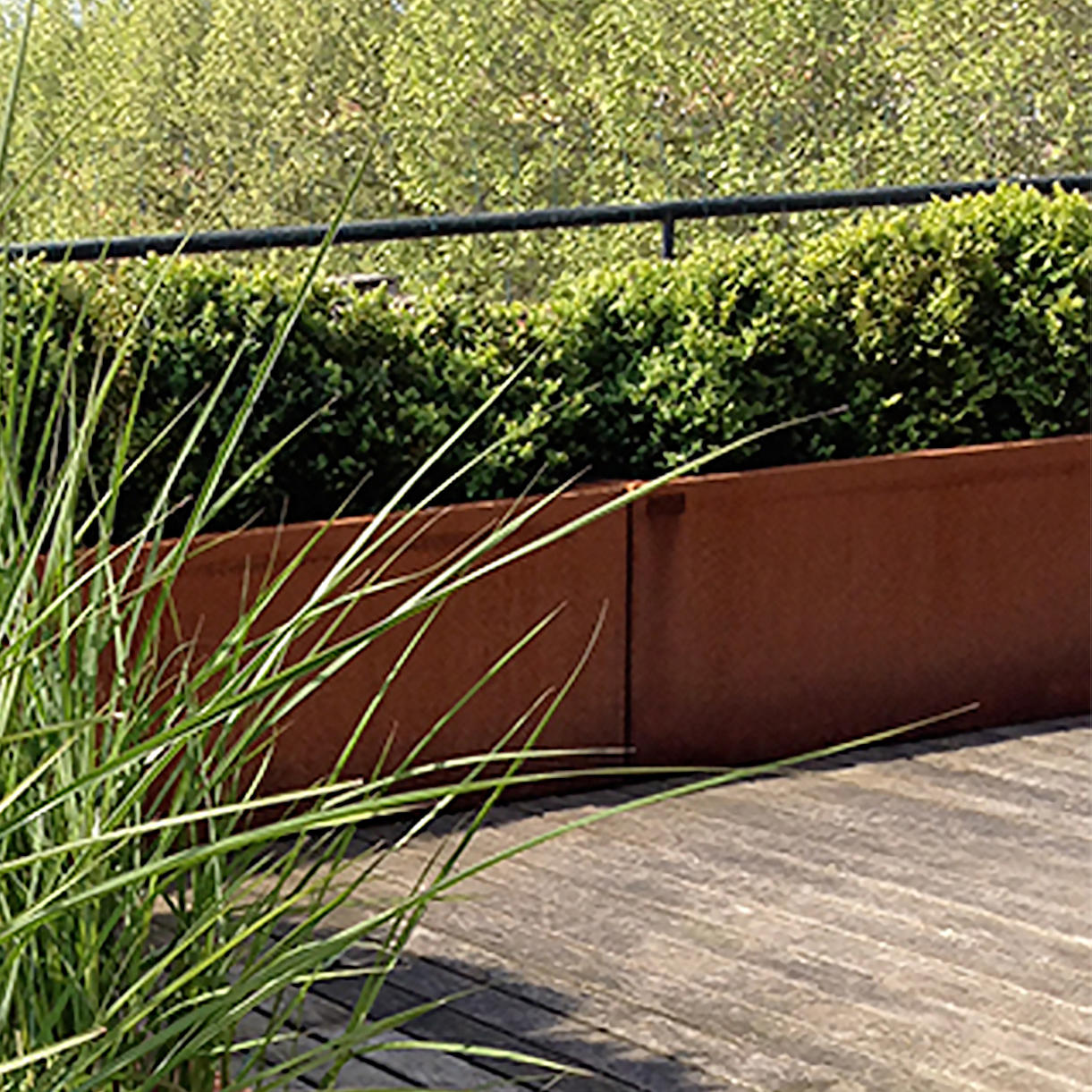 The Corten Steel retaining walls will create a strong structural impact in the garden or other outdoor spaces.