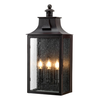 The lanterns are individually hand-finished in an old bronze finish and seeded glass panes. As with traditional style lanterns, this light features a hinged front door for access to lamp.