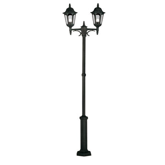 Manufactured from die-cast aluminium with a black finish and clear glass panels.