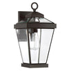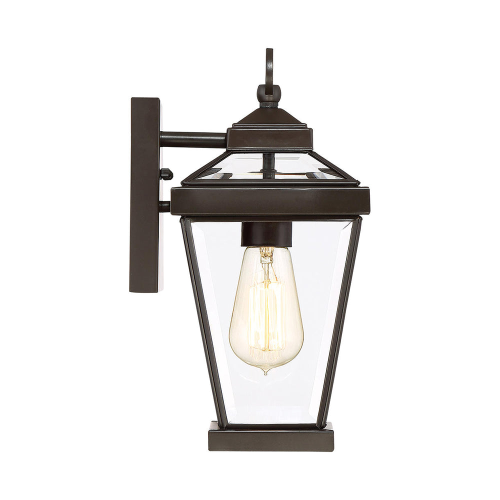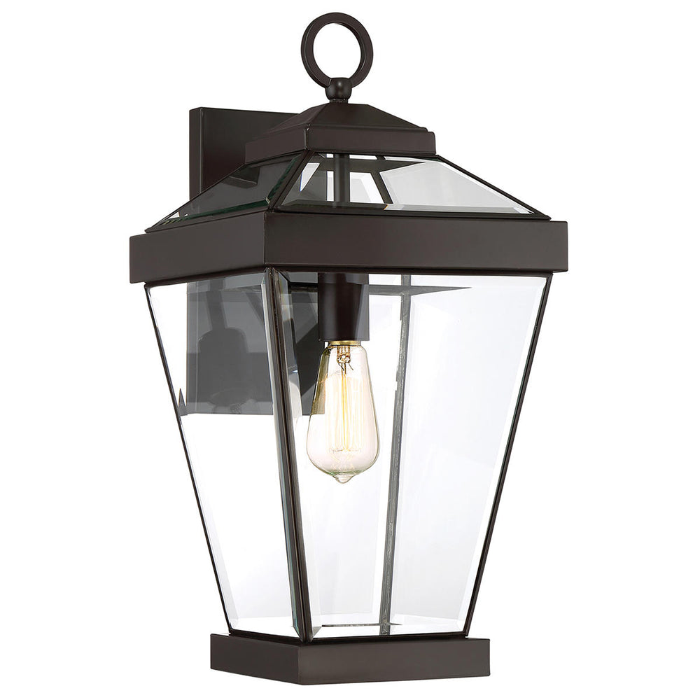 The rich Western Bronze on the base showcases the clear bevelled glass panels on the sides and top of the fixture.