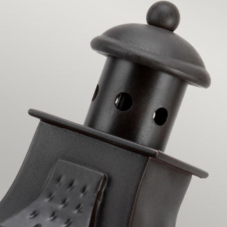 The lanterns are individually hand-finished in an old bronze finish and seeded glass panes. As with traditional style lanterns, this light features a hinged front door for access to lamp.