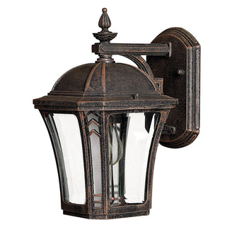 The Wabash outdoor wall lantern is made from a solid aluminium construction with clear bevelled glass. The Victorian styled lantern has etched glass corner panels and decorative chevron detailing.