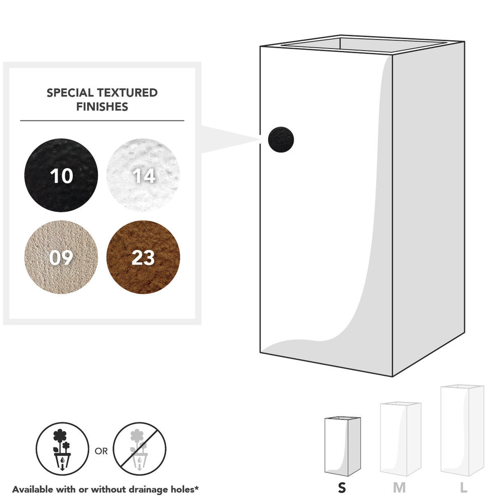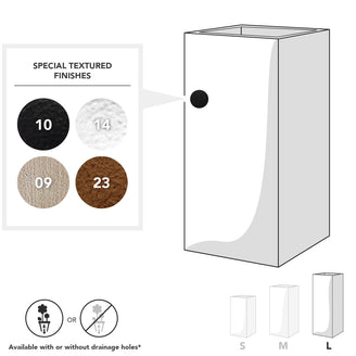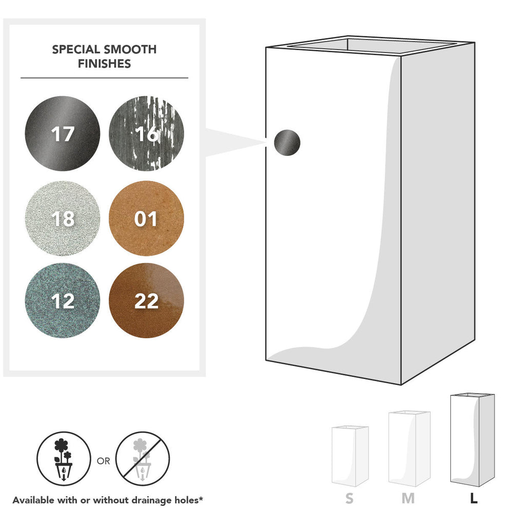 The planters are available in a variety of finishes - just select your choice from the drop down menu to see thumbnails of the finish. You might also wish to examine them in more detail by exploring all our finishes below: