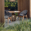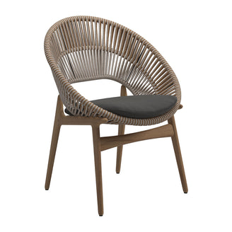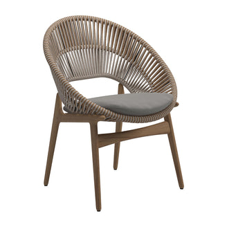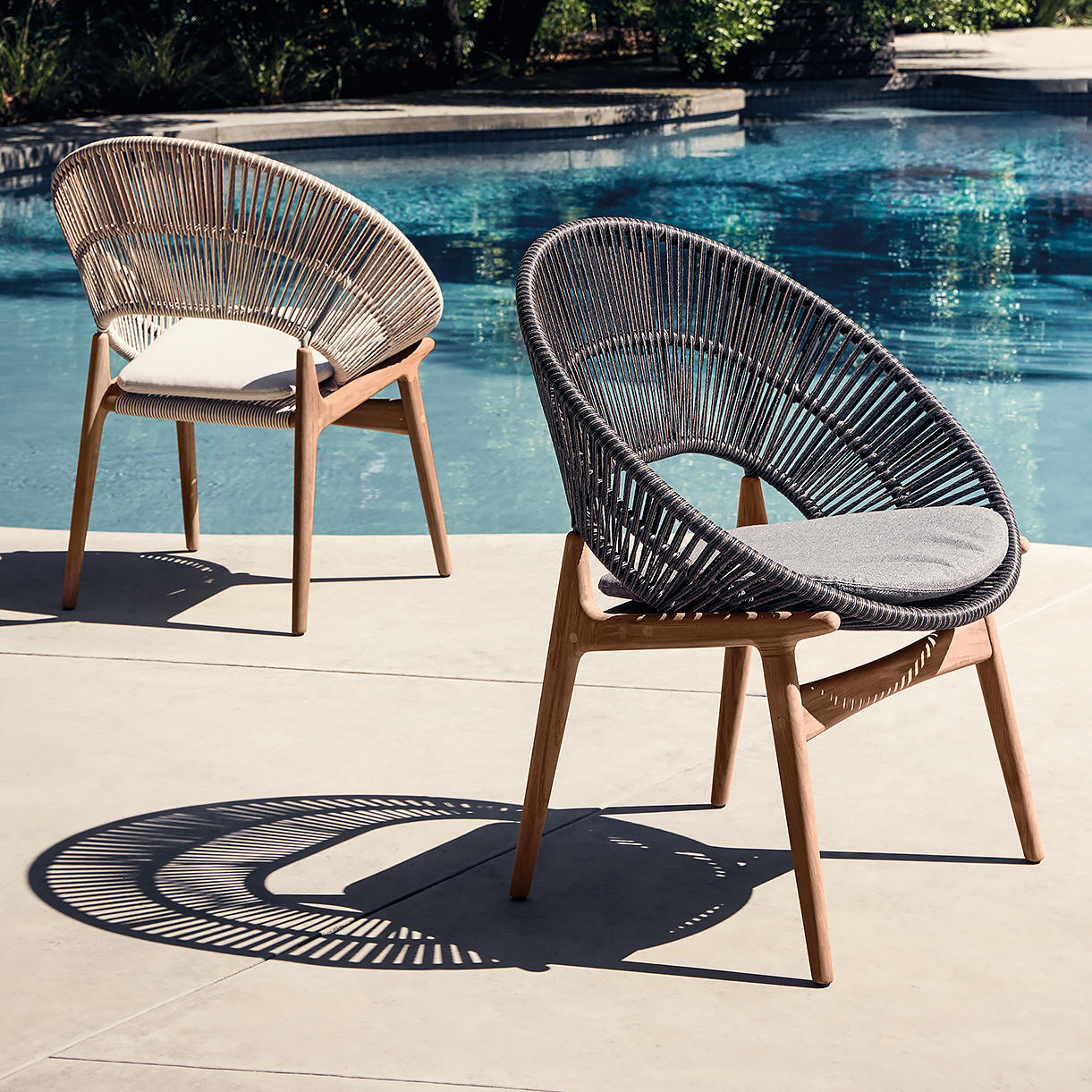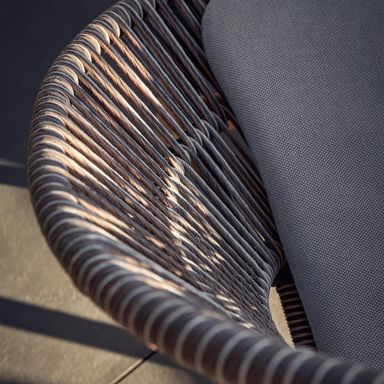 The dining chair is inviting and comfortable. The rope all-weather weave is soft to the touch and the cushions are plump and relaxing.